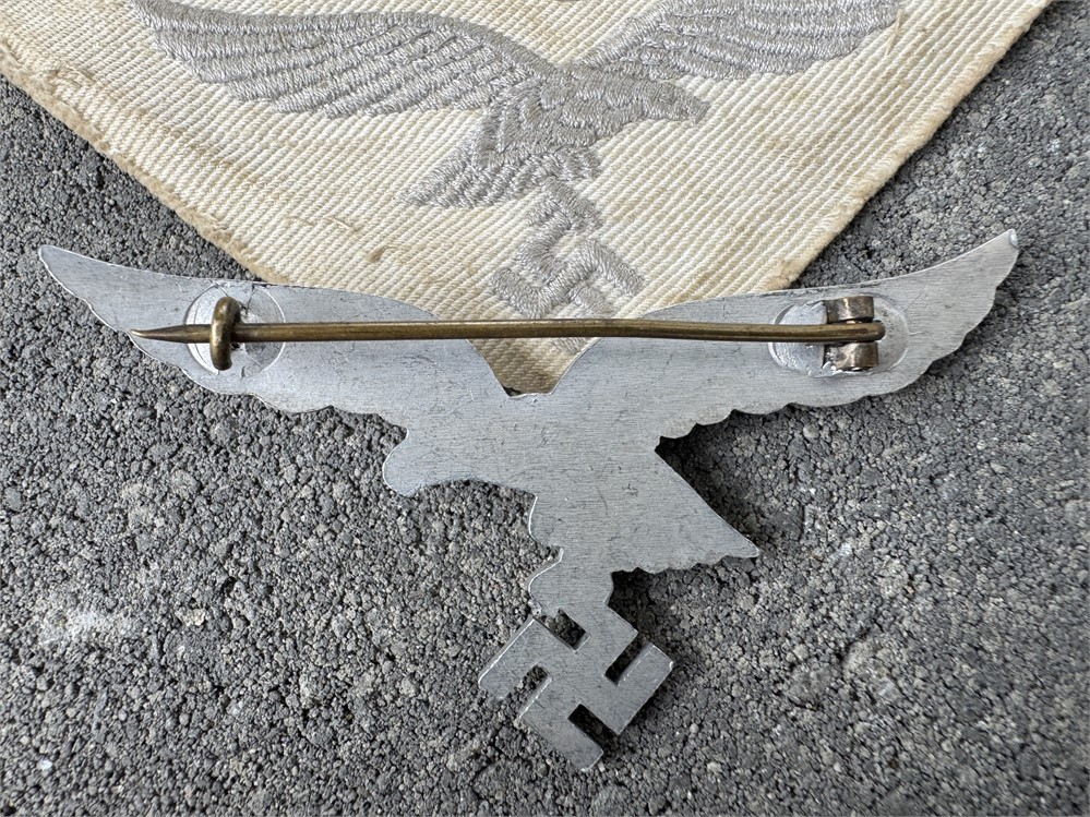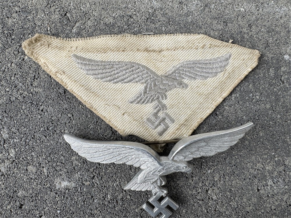 Lot of 2--Luftwaffe Metal Breast Eagle and Machine Embroidered Tropical Eagle