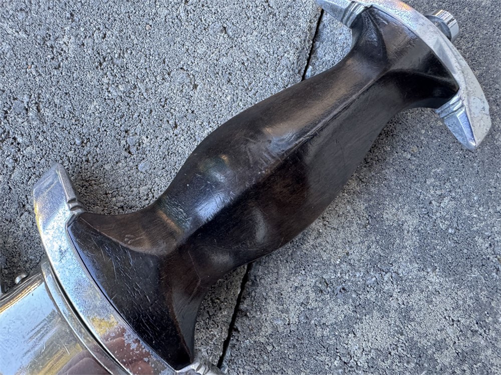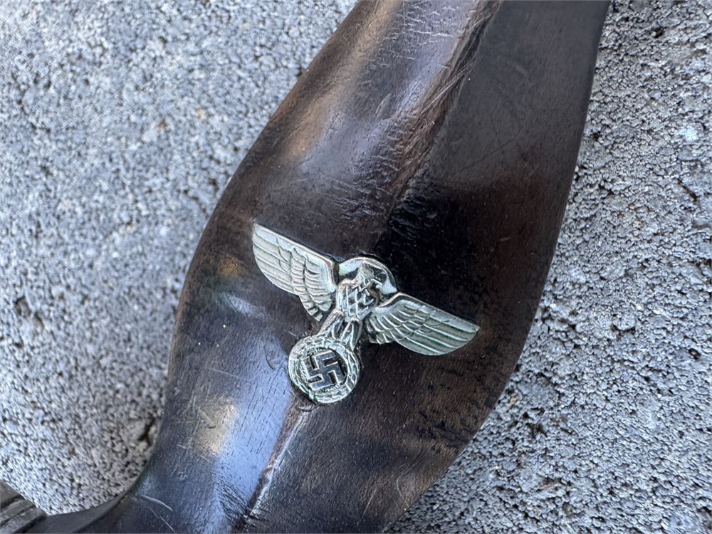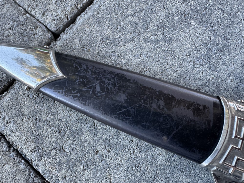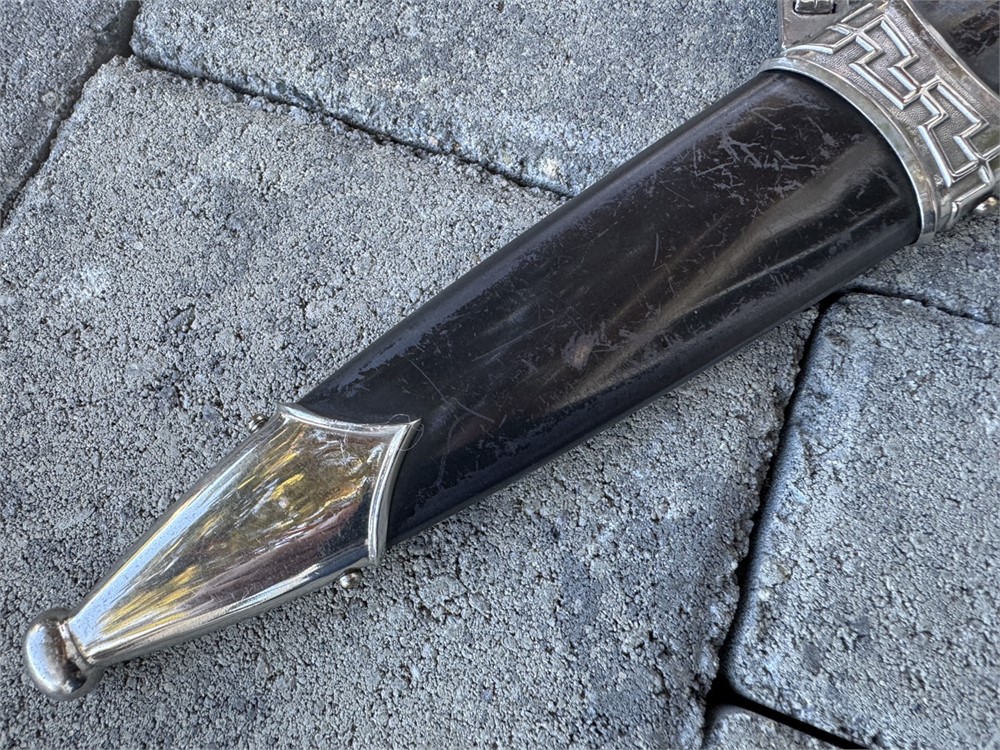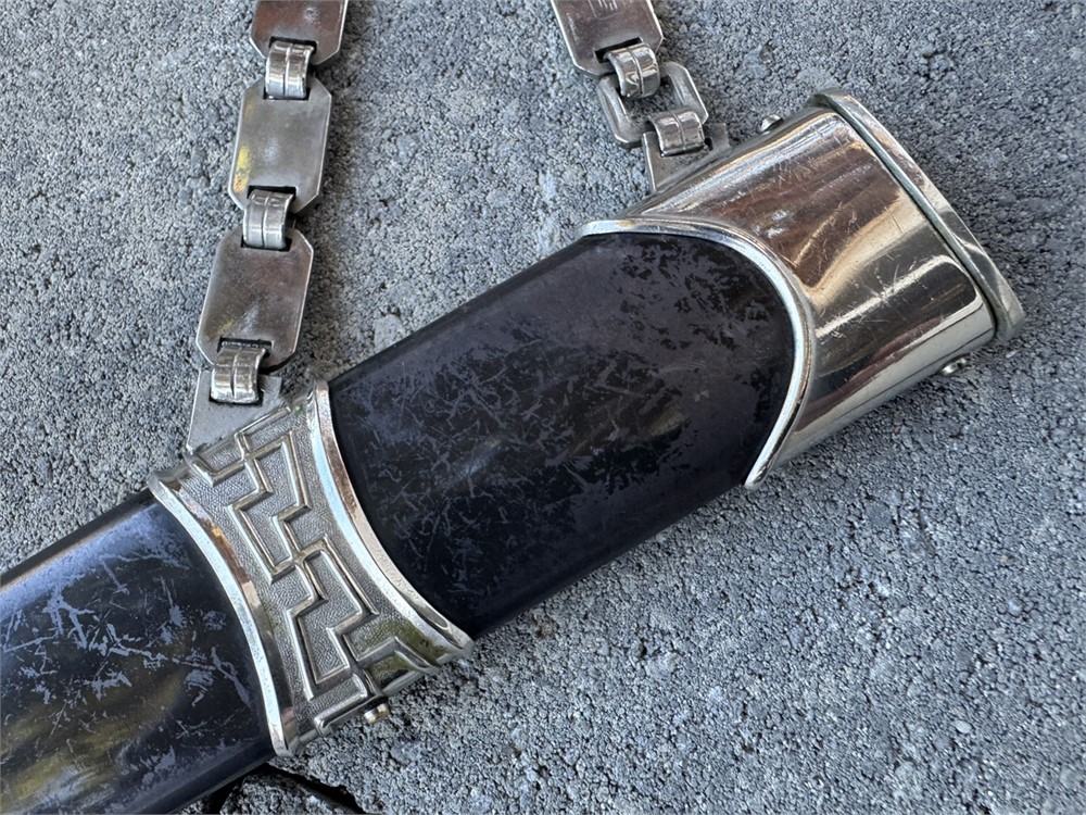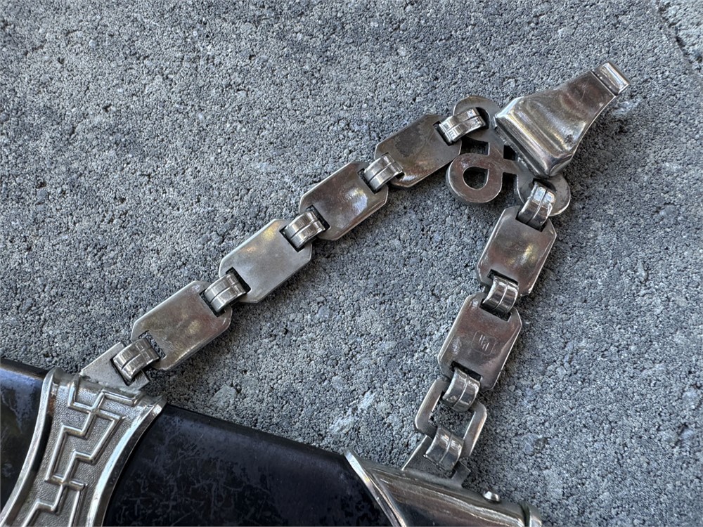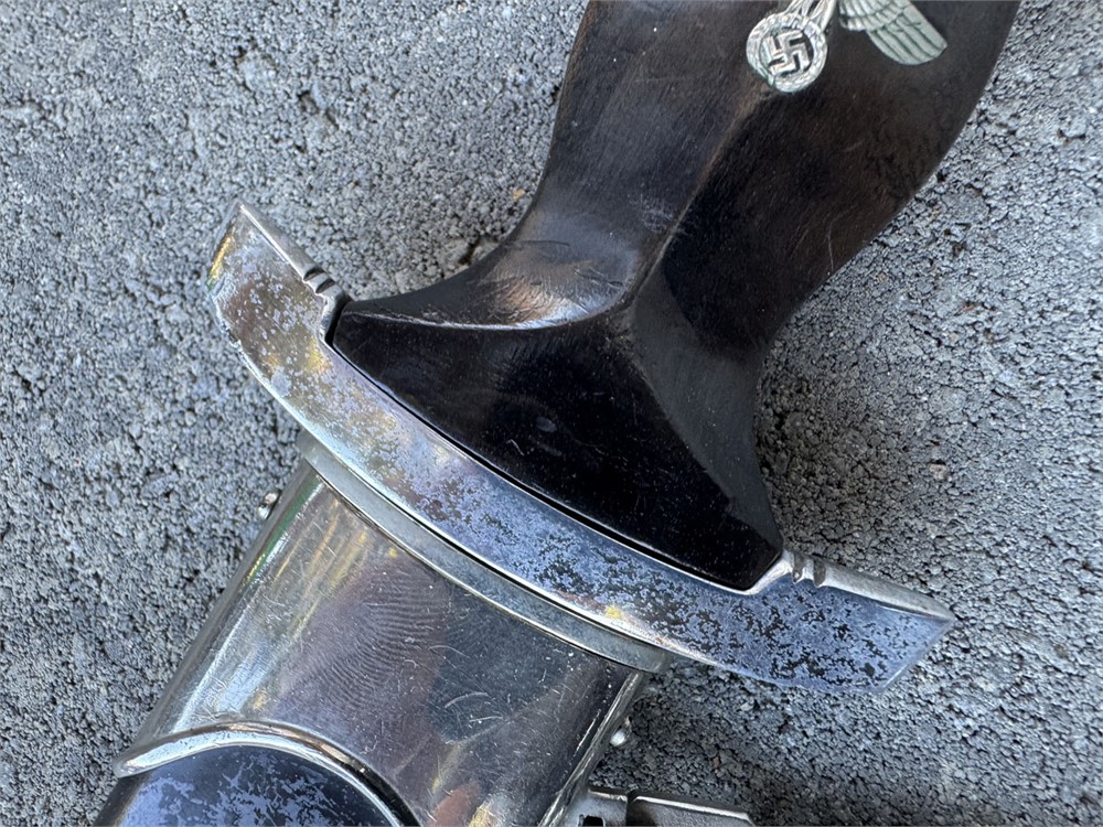 Outstanding early Chained SS dagger in exceptional, near-factory condition. The blade retains its original factory polish with deep, untouched motto etch and no signs of cleaning or later buffing. The lower crossguard is the correct unmarked type.  The grip is flawless, with tight fit to both guards and no chips, cracks, or repairs. The scabbard body is remarkable for still retaining the majority of its original protective lacquer, showing only minimal age toning under the finish. All nickel fittings match perfectly, and the chain and hardware remain crisp and undisturbed. A top-tier example that would be difficult to upgrade.