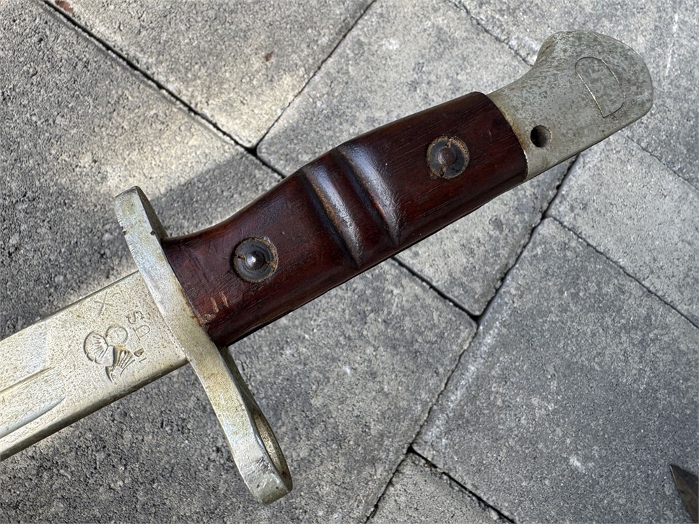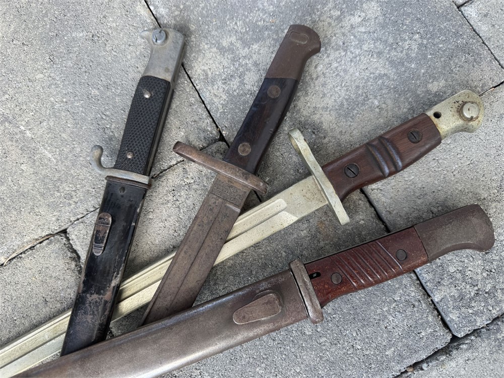 Grouping of 4 bayonets from one veteran family in San Diego. All are in relic-type condition, but are great starter pieces. Have an antique mall space? These are perfect items for that venue!