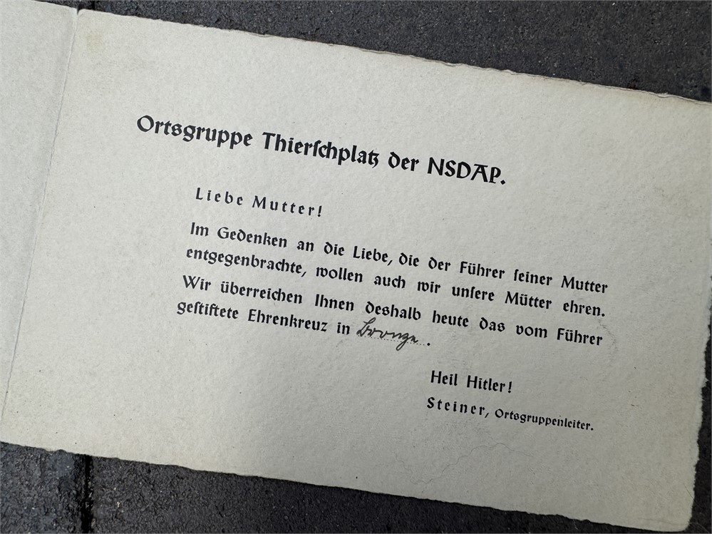 Original two-part card that would accompany a Mother's Cross in Bronze. Undamaged, ready for framing or display with the corresponding cross.