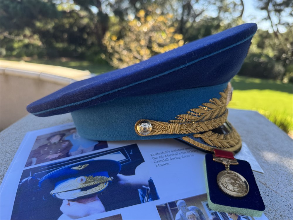 This is his personal visor, given to artist Jerry Crandall and memorialized in photographs of Crandall meeting with Kozhedub and the visor in question.  Also included is a written testimony entitled "Our Trip to the Soviet Union, June 1990" in which Krandal's wife documents the trip and recounts how her husband received the visor.  The testimony is quite interesting.
