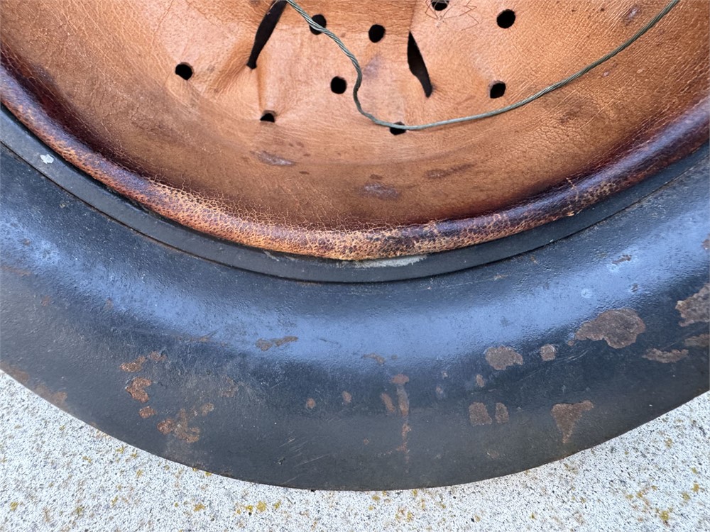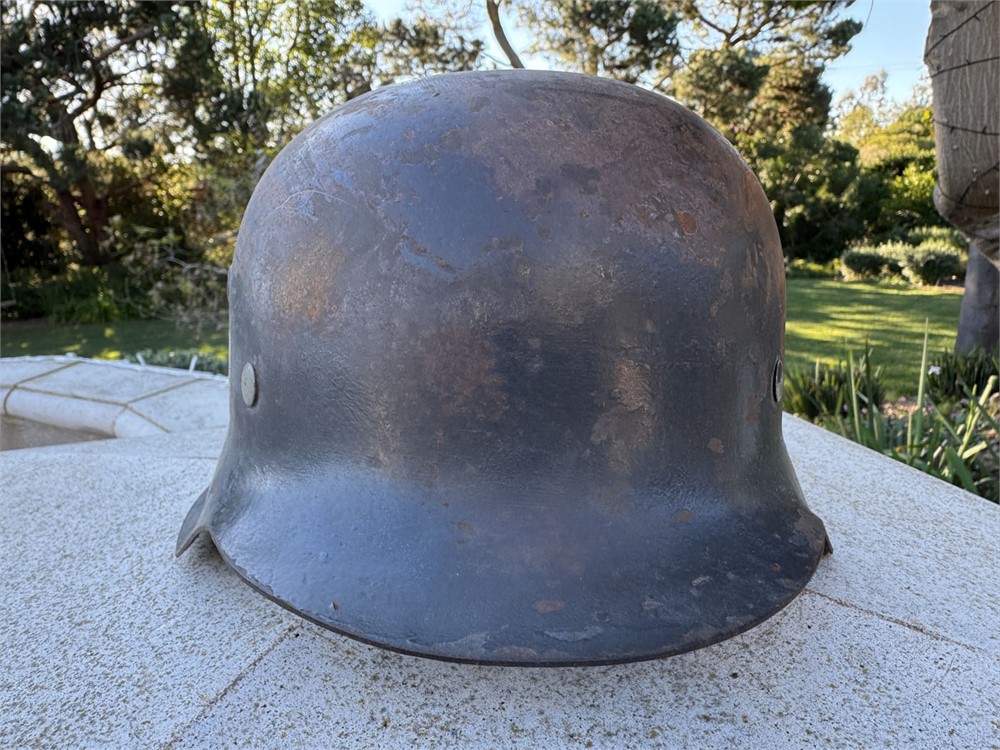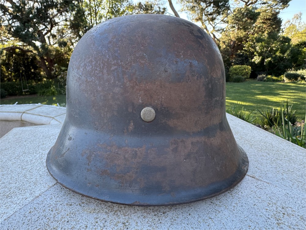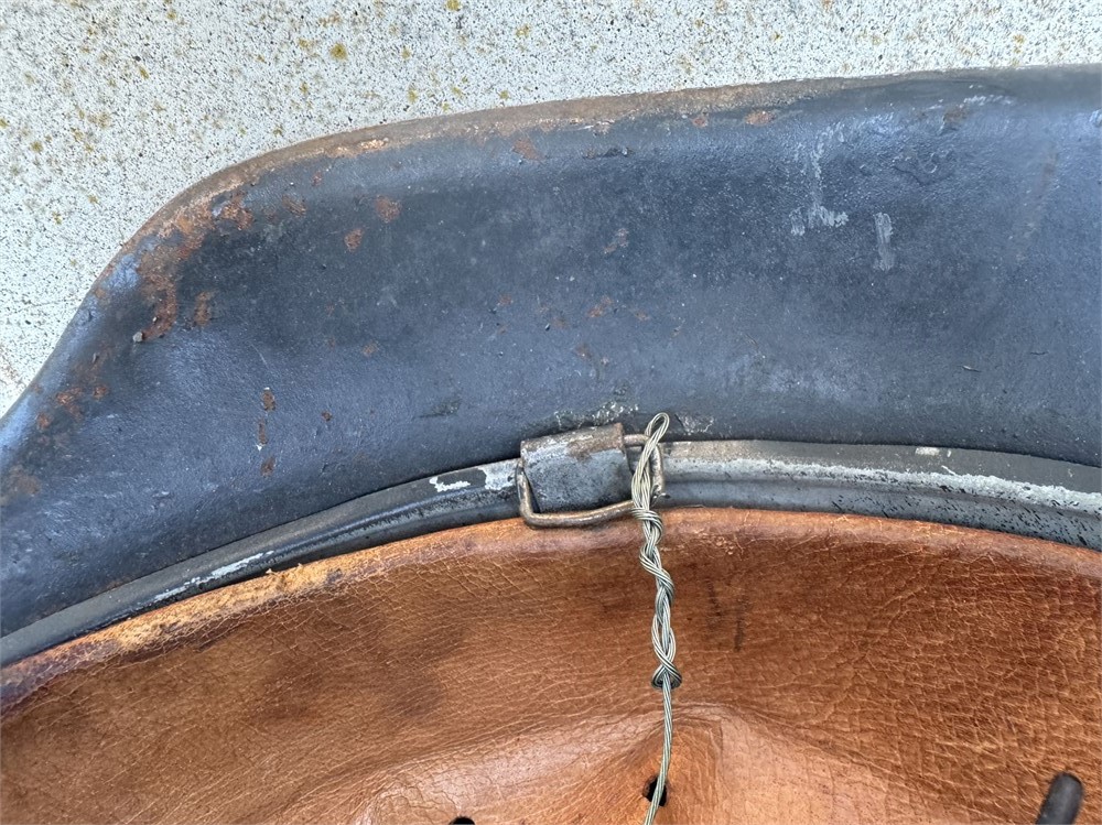 Starting bid is extremely low to encourage bidding, and because I have no idea of the true value of this helmet. The new owner can apply some light vegetable oil to the helmet to arrest and correct the rusting. There is NO pitting on this helmet. Some modern wire is applied to the helmet chinstrap rings, ostensibly to hang it on a wall.