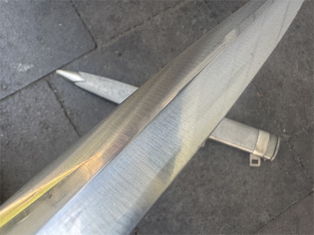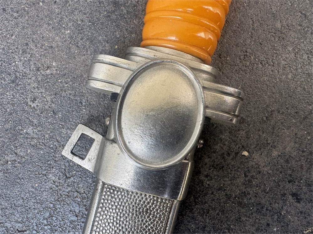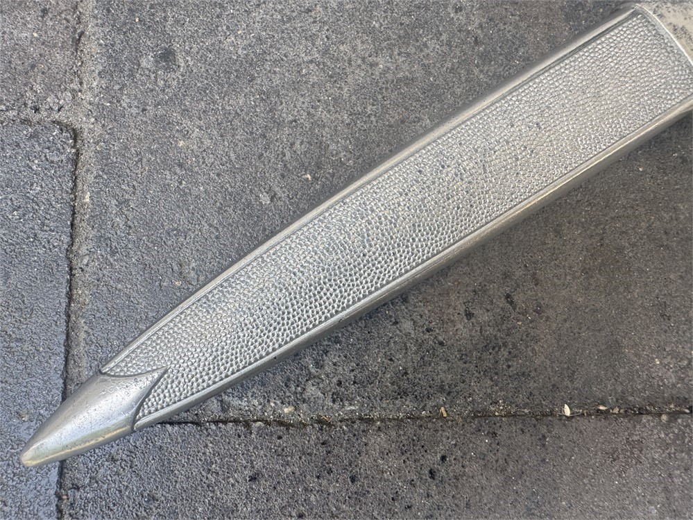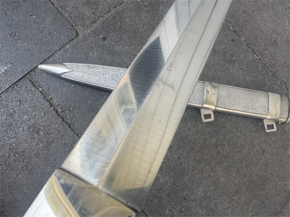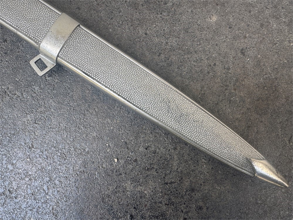 Dagger worn by the officer cadre of the German Red Cross. This is a very nice piece, displaying near flawless. Exterior has an even tone with only minor disruptions to the metal parts finish. Grip is deep orange and is perfect. The only detraction is some minor cracking on the face of the pommel, and minor rust to the cruciform screw cover. Blade is near perfect, with full factory finish. Blade grades 99%.
