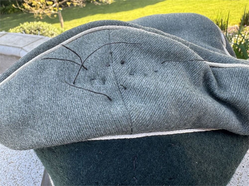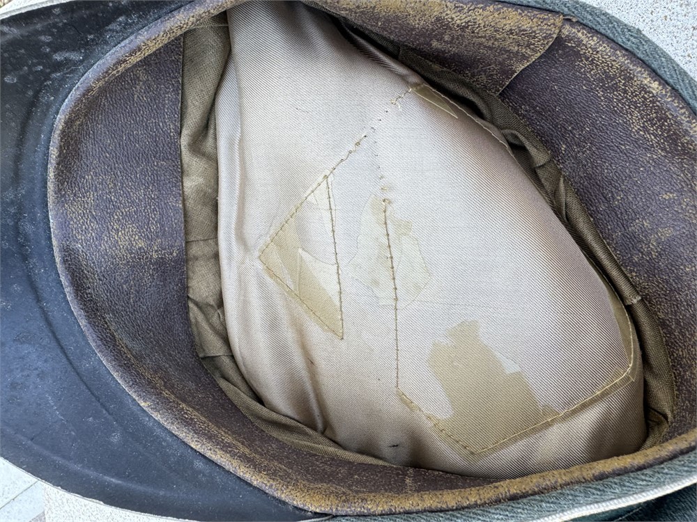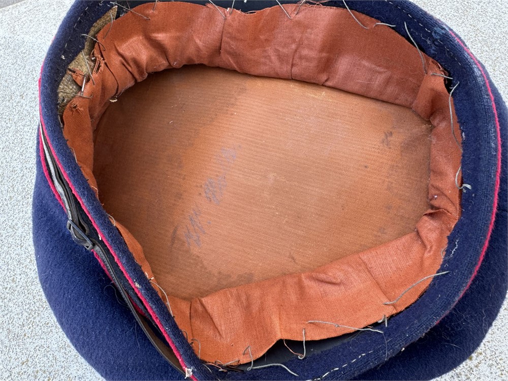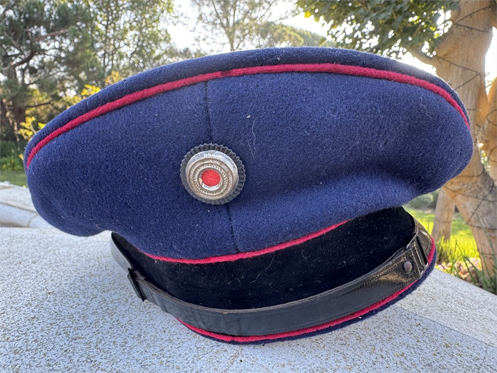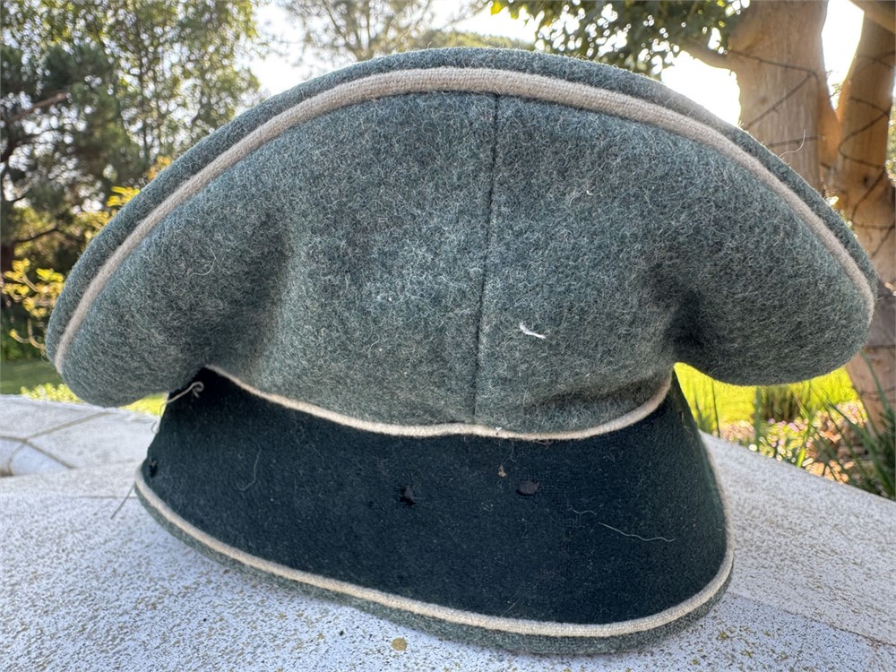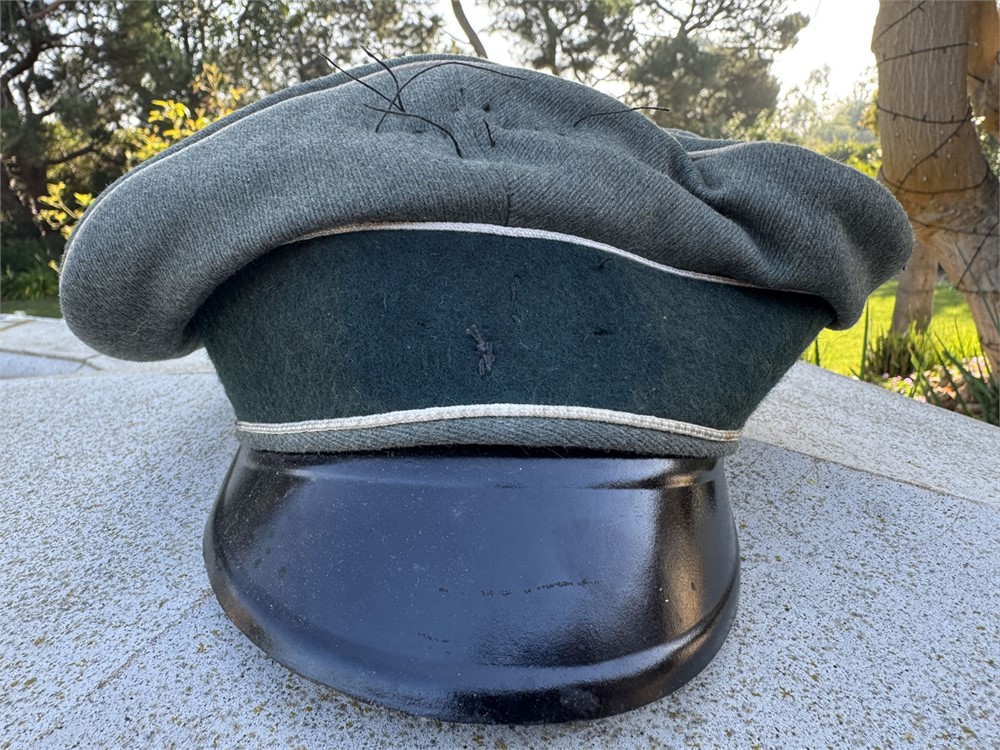 Included in this lot are three visors, all ready for "restoration or repair." Two army visors (NCO or Officer, and one Fire Protection Police visor. Condition is as-shown in the photos.