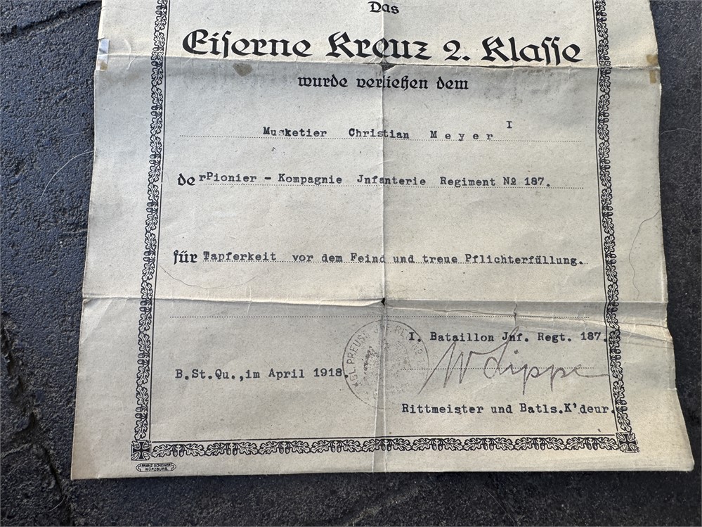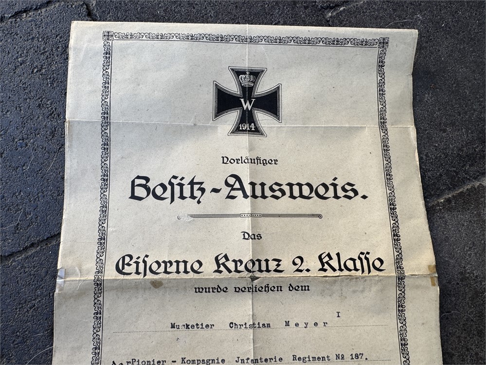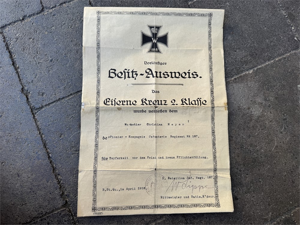 8x10 example of a WW1 Iron Cross 2nd Class. Folded into 8 sections (see photos).