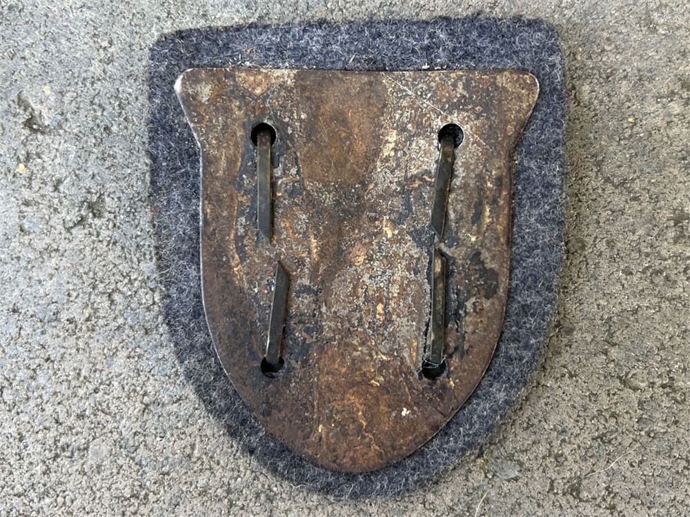 The Krim Shield is a German World War II military decoration awarded to Wehrmacht personnel. It was issued by Nazi Germany to commemorate the 1941-1942 Crimean campaign. The artifact is a campaign shield type badge, affixed to a cloth backing. It features the dates 1941-1942, an eagle clutching a swastika, and an outline of the Crimean Peninsula. This award was presented to soldiers who participated in the battles on the Crimean Peninsula during the Eastern Front operations. Fine quality condition, age to the magnetic backplate.
