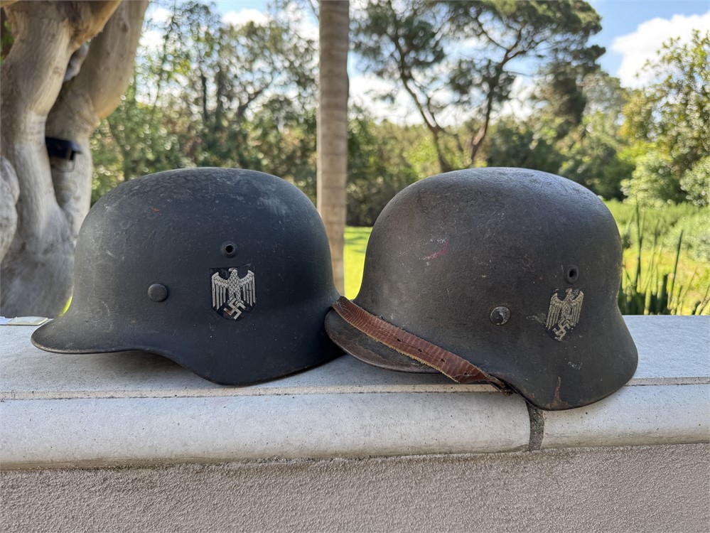 Pair of worn M40 Combat Helmets with SINGLE decals View Watchlist >